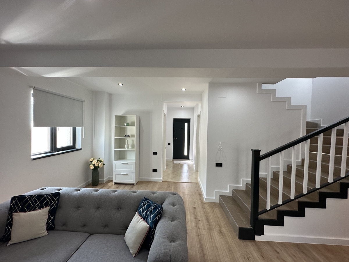 Duplex in zona Tunari, Complexul Paris Residence,P+1E, 4 camere,constructie 2021, Su-103 mp, teren 250 mp, avand toate utilitatile, casele sunt construite din caramida, termoizolate, la parter-living, bucatarie, baie, hol, terasa, iar la etaj-3 dormitoare, 2 gs, 2 balcoane, mansarda.