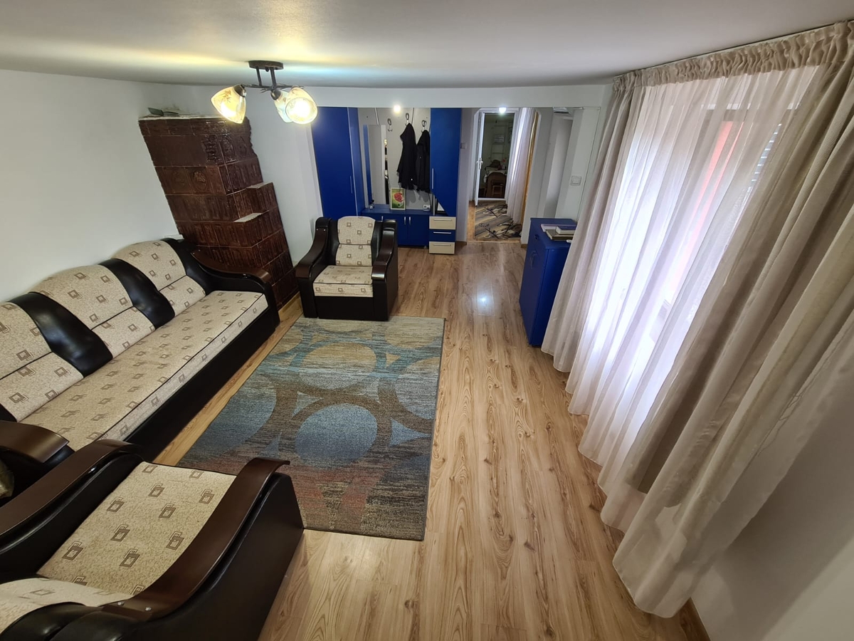 -Cladirea principala (casa) dispune de o suprafata utila de 124 mp,fiind formata din living, 3 dormitoare generoase,hol,baie,bucatarie ,pod .De mentionat faptul ca imobilul a fost renovat si mobilat in totalitate in anul 2021,find schimbate instalatii electric si sanitar,centrala proprie,calorifere ,gresie, faianta,parchet, geamuri pvc.Imobilul va ramane complet mobilat si utilat.