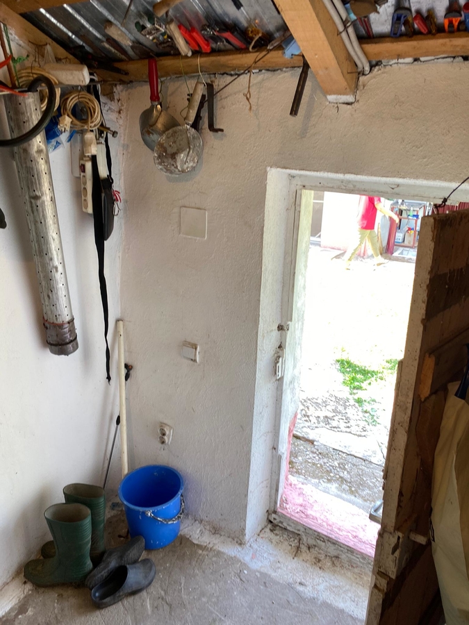 - un corp de 65 mp compus din 2 dormitoare, hol, bucatarie si magazie. - un corp de 22mp compus din 1 dormitor si 1 hol. Casa are apa curenta si este recent renovata cu sistemul electric nou, tencuita si acoperita cu tabla.