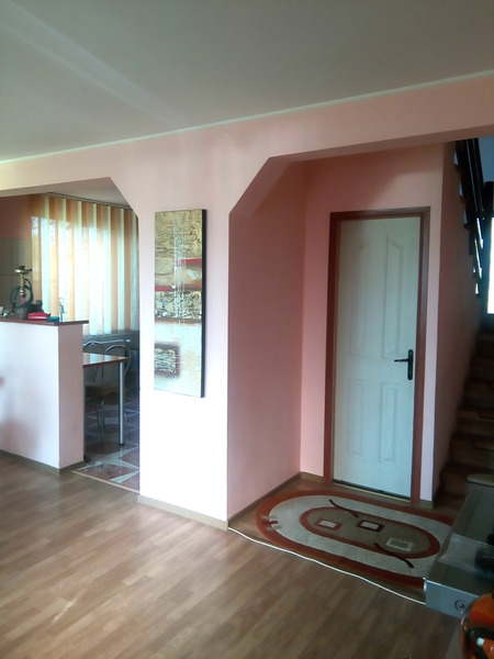 Spatiul se poate compartimenta dupa dorinta. In prezent, la parter este un living open space, un dormitor, bucatarie, debara; baie, iar la etaj trei dormitoare si un living open space cu balcon.