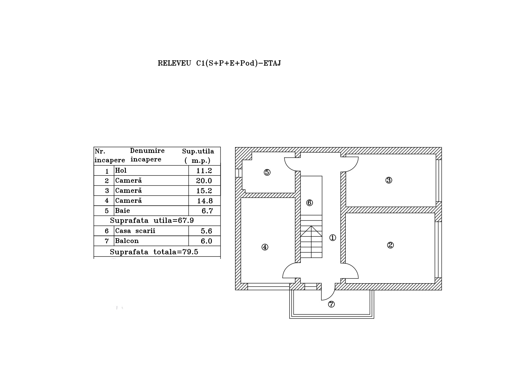Etajul este compus din 3 dormitoare, fiecare cu intrare separata (dormitor matrimonial de 20 metri patrati utili si 2 dormitoare a cate 15 metri patrati utili), baie in suprafata de 7 metri patrati utili si terasa inchisa, in suprafata de 6 metri patrati utili.