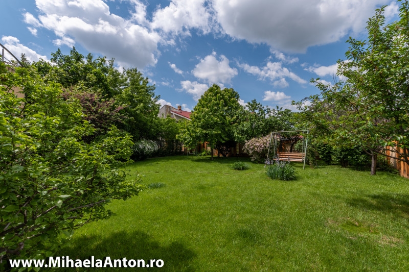 Curtea este o oaza de verdeata, amenjata cu gazon, flori, pomi fructiferi, brazi si arbusti. Partea din fata a curtii este betonata si amenajata pentru parcare( se pot parca 4 masini) iar partea din spate este zona de relaxare, locul ideal unde copii se pot juca in voie. Curtea beneficiaza de sistem de irigatie.