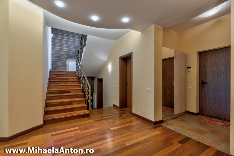 Pardoselile sunt placate cu parchet din lemn de nuc brazilian in zona de zi, holuri si casa scarii, iar pardoselile din dormitoare au fost amenajate cu o mocheta de cea mai buna calitate. Pentru bai, bucatarie si terase s-au montat placi ceramice ( gresie). Toate usile de interior sunt din mdf.