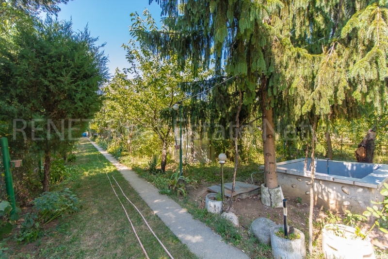 In curte accesul este betonat sunt pomi fructiferi vita de vie sistem irigatie garaj 2 masini foisor interior cu pod pe structura de lemn si caramida cotineata pasari grajd animale magazie lemne solar legume.