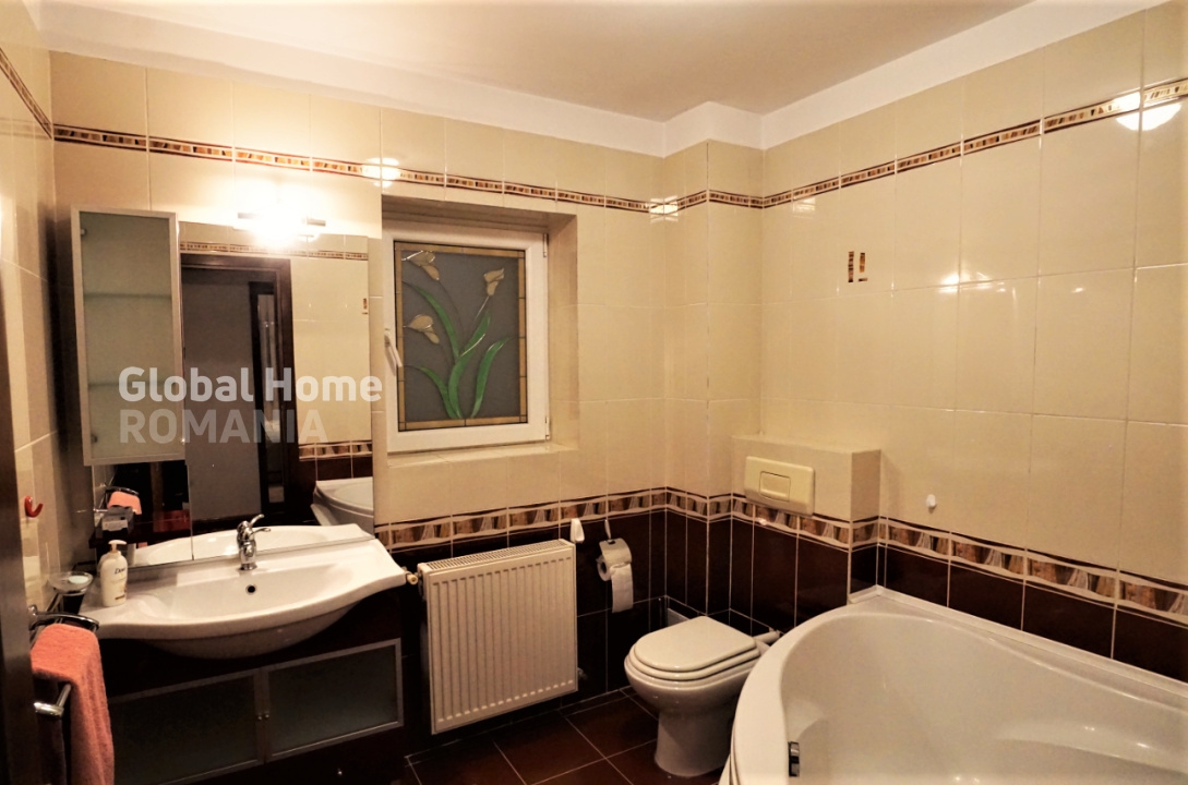 De asemenea, detine un garaj (24MP), curte libera si gradina decorata cu numeroase plante si flori.
