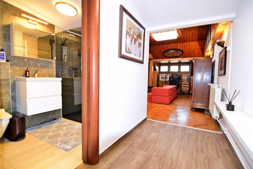 Vila este amplasata pe un teren de 180mp si are in componenta 4/5 camere dispuse pe parter si etaj cu 2 bai – ambele cu fereastra directa afara , o terasa de 15mp si pivnita la subsol.