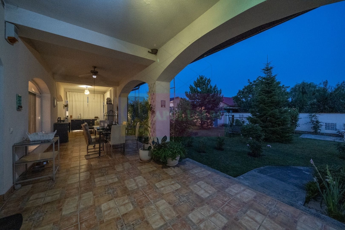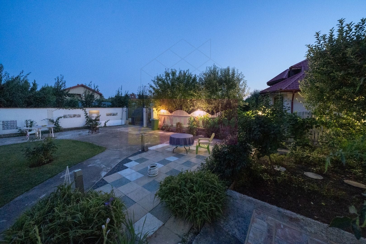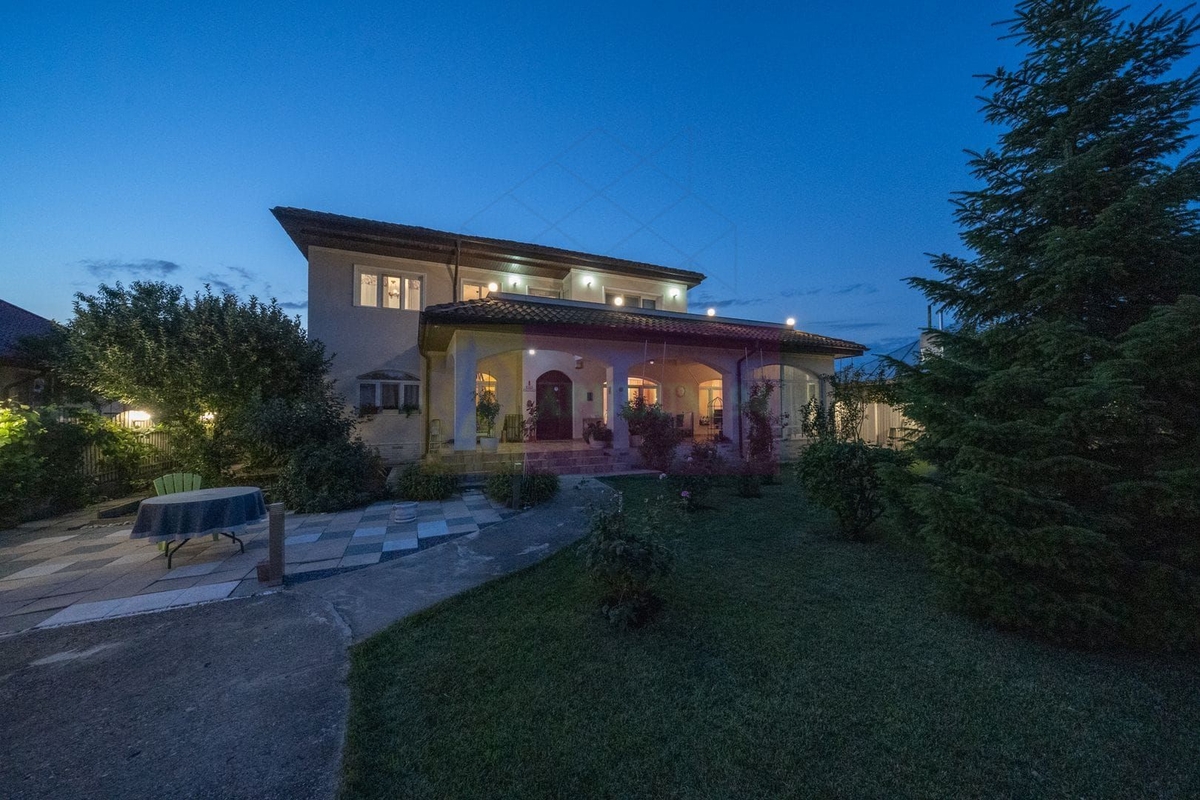 Pe un teren de 704 mp situat pe un drum de servitute care se inchide in acest teren, ceea ce confera multa liniste si intimitate, este construita aceasta vila cu o arhitectura foarte frumoasa, cu suprafete vitrate mari ceea ce o face foarte luminoasa.