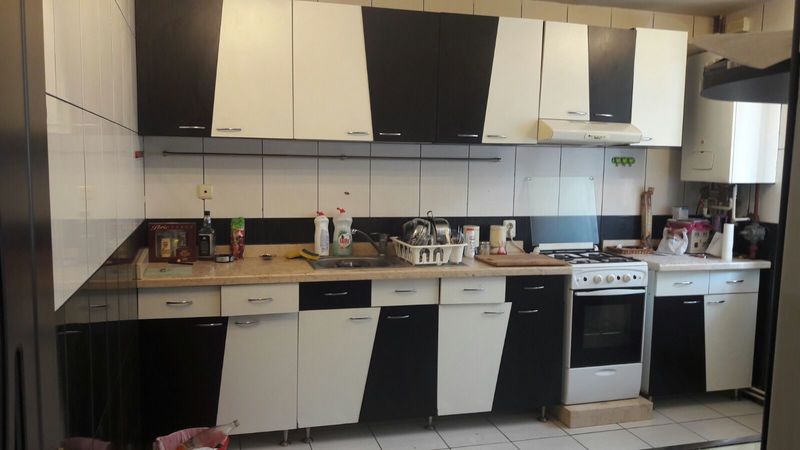 gresie, faianta, parchet, geamuri termopan, aer conditionat, 2 usi metalice la exterior.