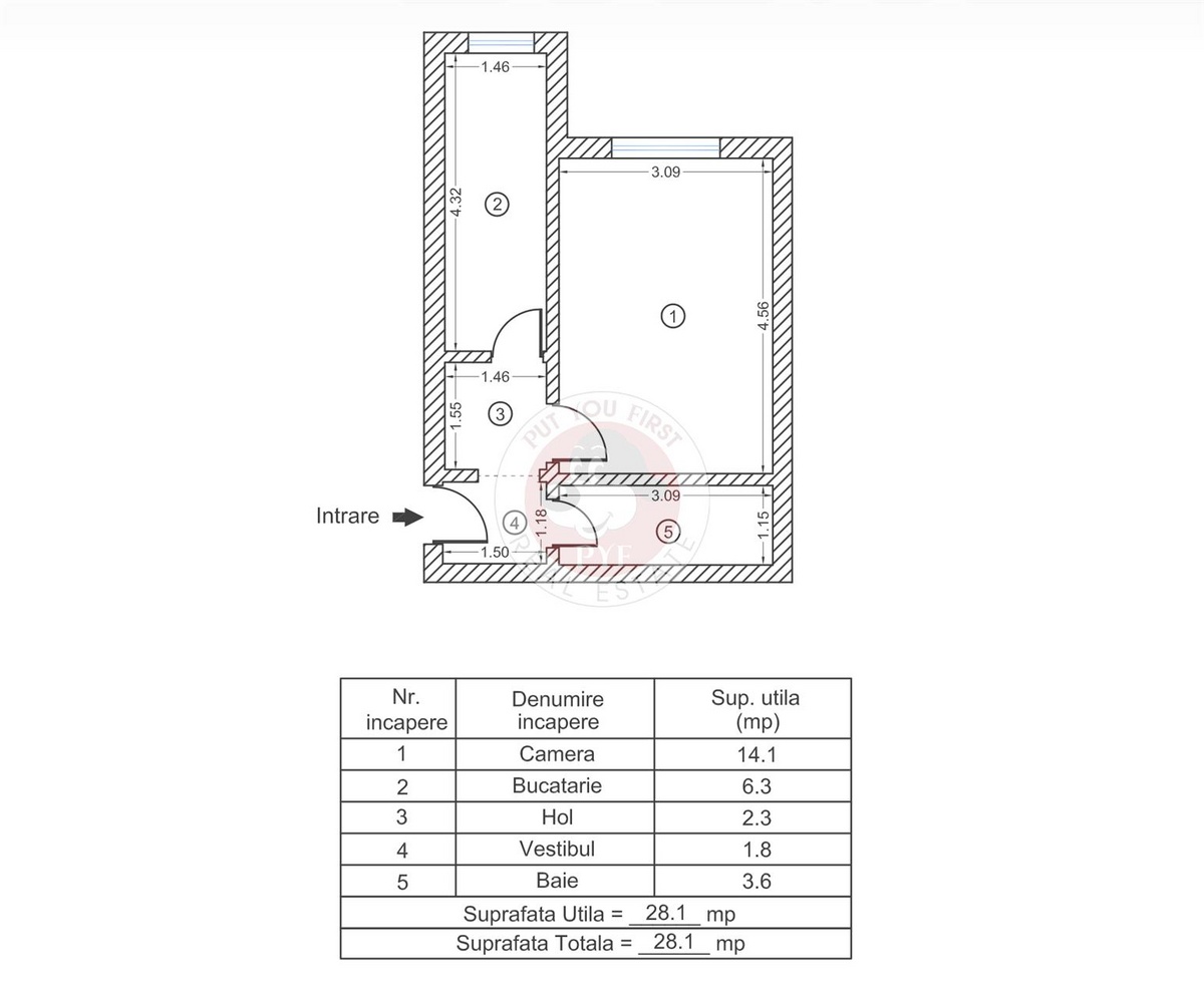Suprafata totala: 28.1 mp