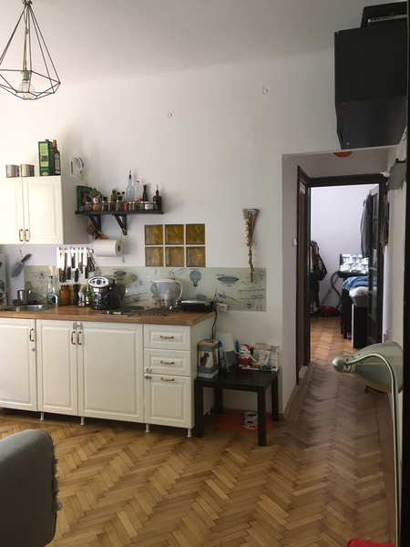 Vand studio luminos in vila parter, 2 camere, 1 baie, 1 camera transformata in living cu bucatarie deschisa (posibilitatea de a reveni la chicineta separata) si terenul aferent constructiei imobilui,