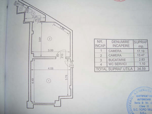 Optiuni interior: Apometre Centrala termica Contor gaze Instalatii sanitare noi Izolatie termica Renovat recent Usa metalica