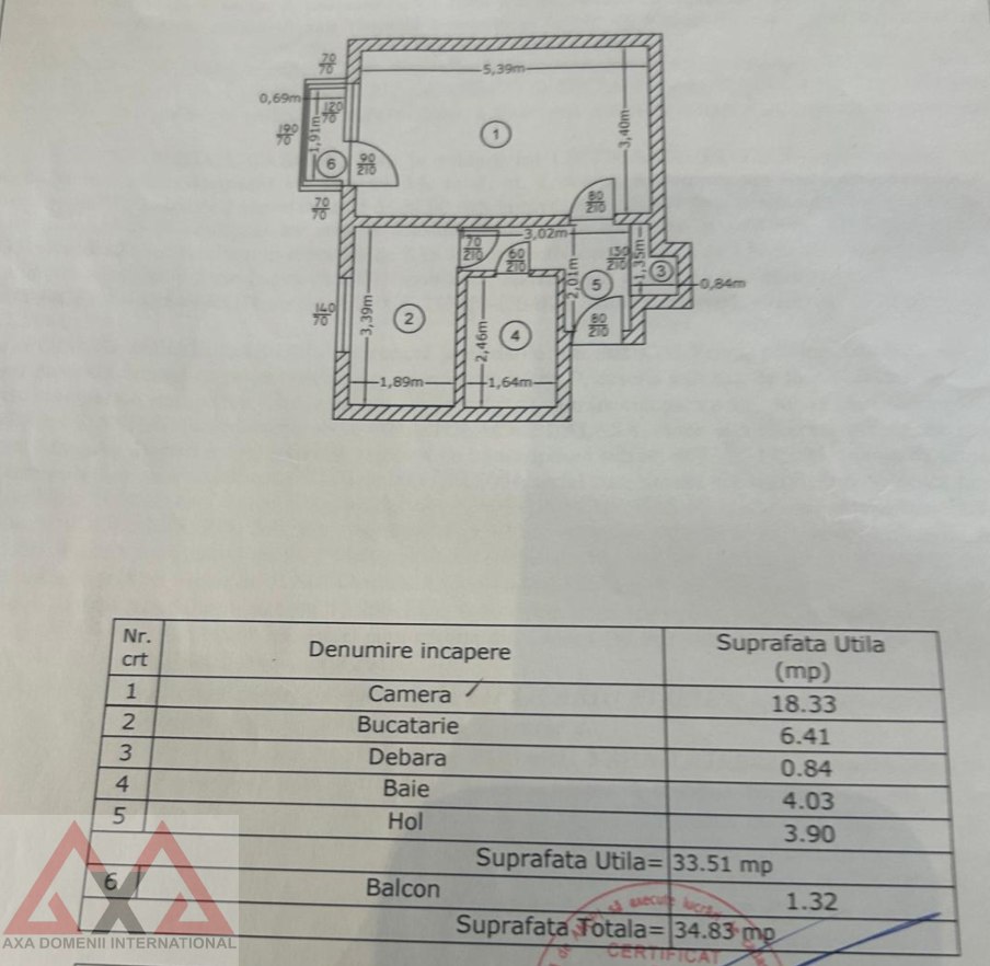 Garsoniera este situata la etajul 1/3, intr-un imobil solid din 1963, cu structura decomandata, avand o suprafata utila de 33,51mp si o suprafata totala de 34,83mp, cu balcon pe camera.