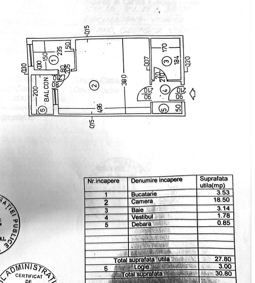 Garsoniera are parchet din lemn masiv, termopane, si necesita renovare.
