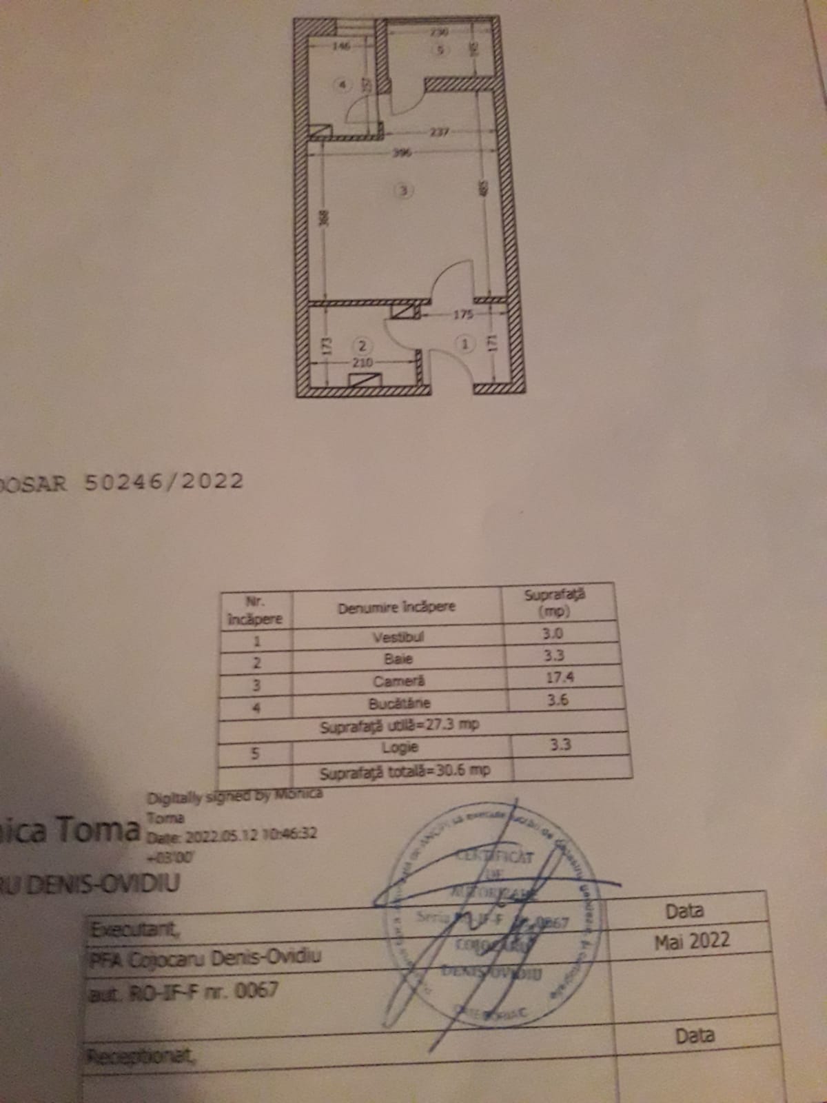 Se vinde garsoniera confort 1 etaj 1/10 intr-un bloc reabilitat ,construit in anul 1977 ca si compartimentare este de tip semidecomandat avand o suprafata de 27.3 mp utili respectiv 30.6 construiti desfasurati astfel:1 camera, 1 baie ,1 bucatarie, 1 balcon inchis in termopan foarte spatios cu vedere fata! (aveti schita atasata la sectiunea poze).