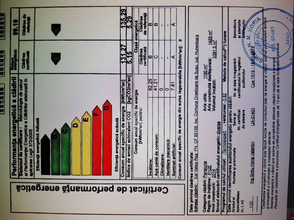 Aviz energetic (emis 18.03.2018): eficienta clasa B