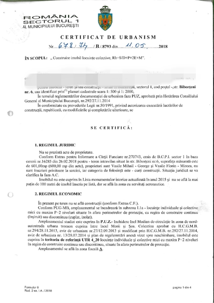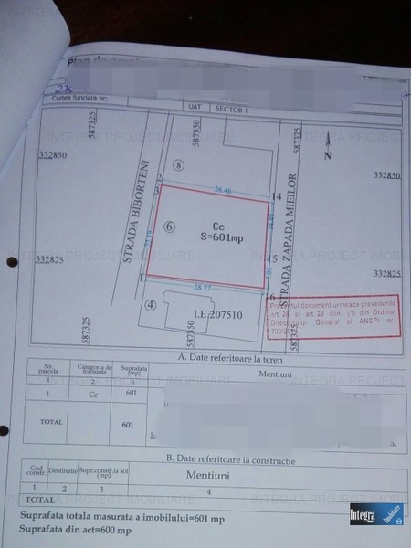 Teren 600mp,situat intr-o zona linistita Baneasa-Aviatiei,cu deschideri de 22ml la 2 strazi -Zapada Mieilor si Biborteni,perpendiculare pe strada Biharia..Terenul are cadastru si intabuare,CERTIFICAT DE URBANISM PT CONSTRUCTIE. Se poate construi S/D+P+2+M,POT 45% Conform certificatului de urbanism.Oportunitate investitie.
