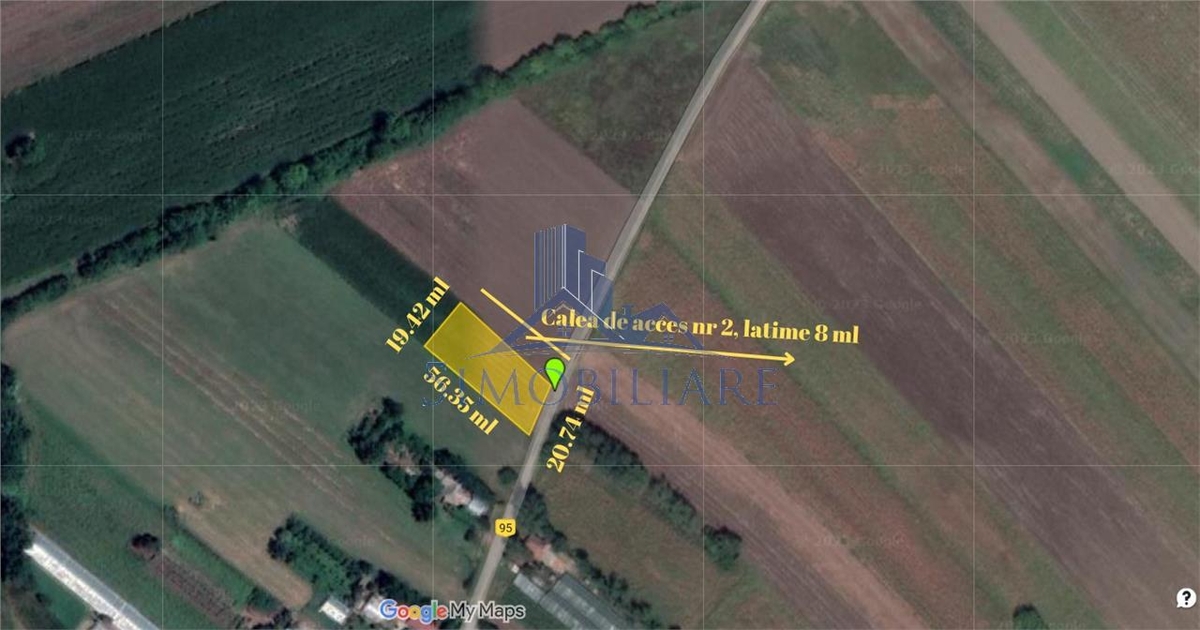 Terenul are dubla deschidere, la DC 95- 20 ml, si la drumul de servitute- 50 ml