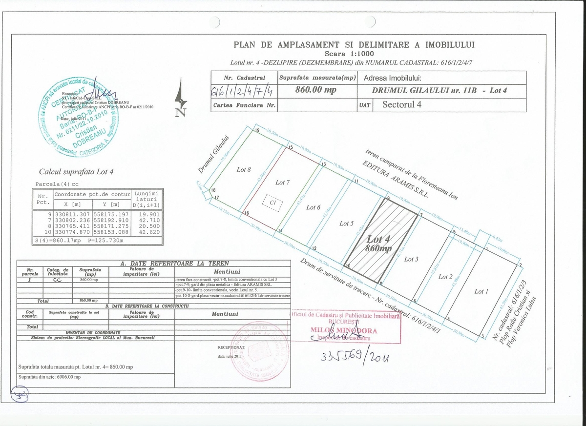 Drumul Gilaului 11 B, zona M3, 860 m, liber, toate actele, toate utilitatile, drum de servitute 5 m asfalt, proprietar.