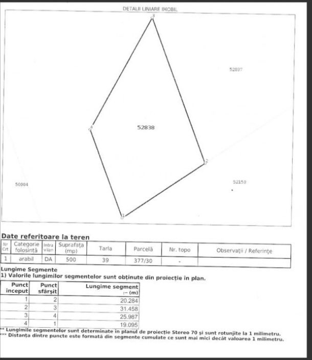 Terenul este intravilan, intabulat, certificat de urbanism obtinut recent, conform caruia terenul se afla in zona de locuinte, deschidere la doua strazi asfaltate. Conducta cu apa trece prin fata terenului pe doua laturi.