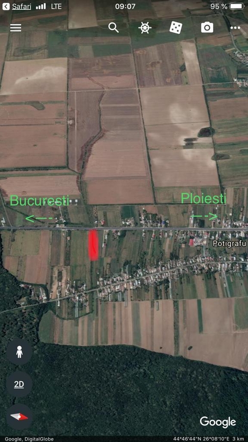 proprietar vand teren intravilan, deschidere 17,5 ml la DN1, situat la intrare in Potigrafu, pe sensul Bucuresti-Ploiesti, toate utilitatile. Posibilitate alipire a inca 2 loturi de teren invecinate