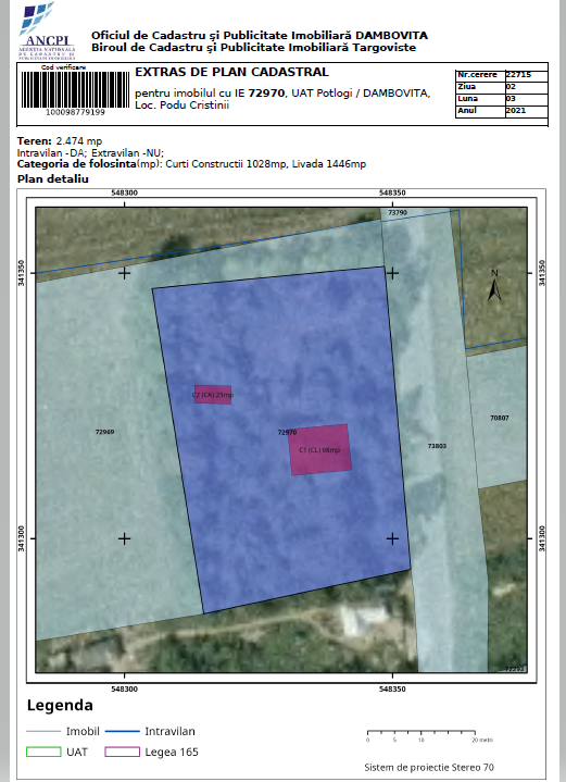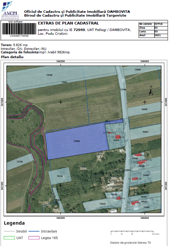 DE VANZARE [sau SCHIMB cu apartament ̸ garsoniera ̸ teren Bucuresti ] TEREN (12.300 mp) total INTRAVILAN, cu acces 67 metri la apa curgatoare, situat in JUD. DAMBOVITA, COMUNA POTLOGI, SAT PODUL CRISTINII.
