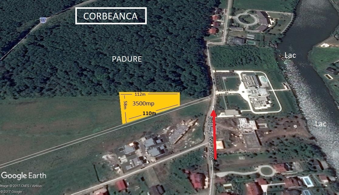3500MP. CORBEANCA LATURA LA PADURE 115M, STR .LAGUNA ALBASTRA.De vanzare teren intravilan in suprafata de 3500mp cu acces de 110 m la strada iar cu o latura de 115m la Padure.Terenul este amplasat in Corbeanca intr o zona exlusivista pe strada Laguna Albastra ,strada ce este asfaltata unde sunt toate utilitatile(Curent,Gaz,Apa,Canalizare),aproape de Paradisul Verde.Prin PUG aprobat de primarie pe acest teren se pot construi case cu P+1+M...Pret 85 e/mp.