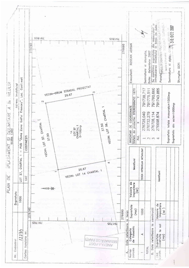 teren Costinesti - Golful Francez - 1000 mp.- deschidere 26.67 ml. Suprafata 37.50 x 26.67 ml