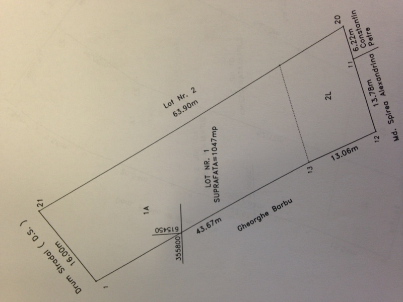 Terenul este format dintr-o parte agricola (acum cultivata cu porumb) si o livada (pruni) si are 1047mp masurati la cadastru.