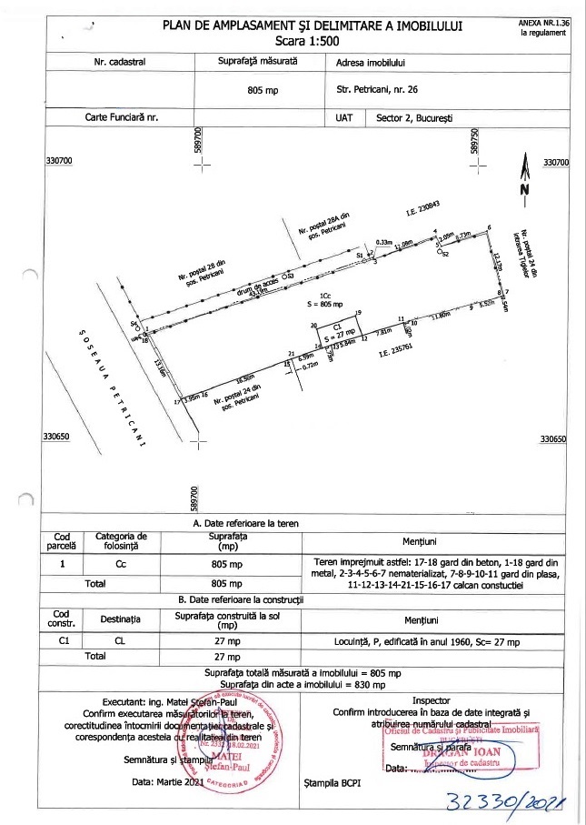 Lacul Tei - Sos. Petricani nr. 26, teren stradal, suprafata 832 mp cu deschidere de 13,16 ml, toate utilitatile, toate actele necesare vanzarii, cadastru si intabulare, pret negociabil.