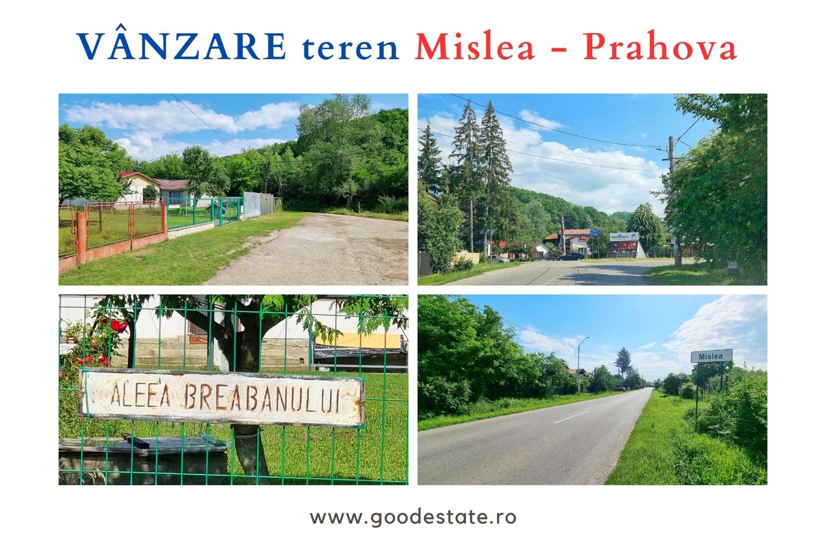 aleea Breabanului sat Mislea, suprafata 6011 mp, deschidere 23 m, intre case, utilitati la strada, UTR 7, POT maxim 25%, CUT 0,3, regim de inaltime P+2E, cadastru, intabulare, pret negociabil,