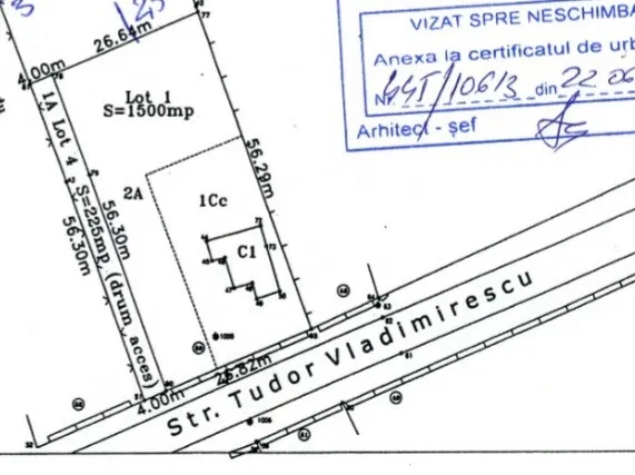 proprietar - vand teren, 1735 mp cu 225 mp drum de servitute. Accesul la teren se poate face atat din strada principala, cat si pe partea stanga a terenului pe un drum de servitute de 4m. Pretabil pentru constructie case tip duplex.