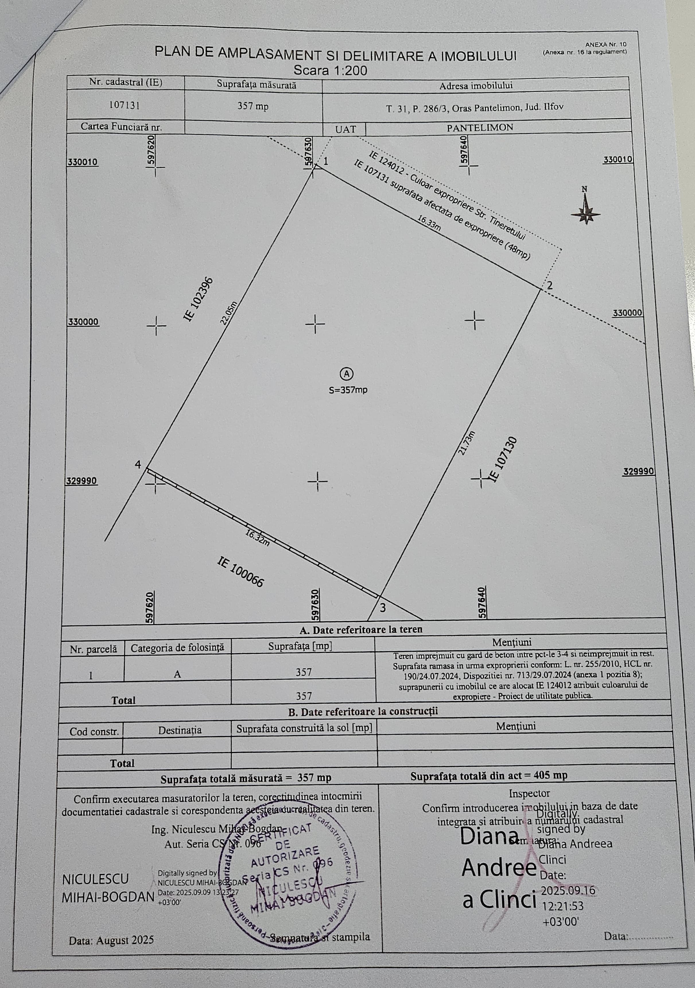 De vanzare teren intravilan in Pantelimon, situat direct pe Bulevardul Tineretului, intr-o zona linistita si dezvoltata cu case si vile.