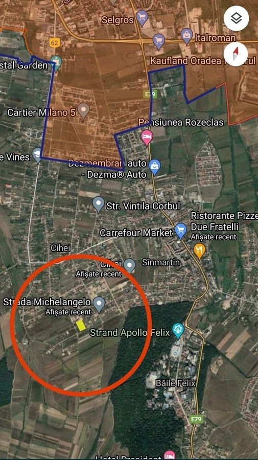 Teren 720 mp situat la Sanmartin Bihor , 3km de Oradea zona Carmel Decebal str Michelangelo front 21m
