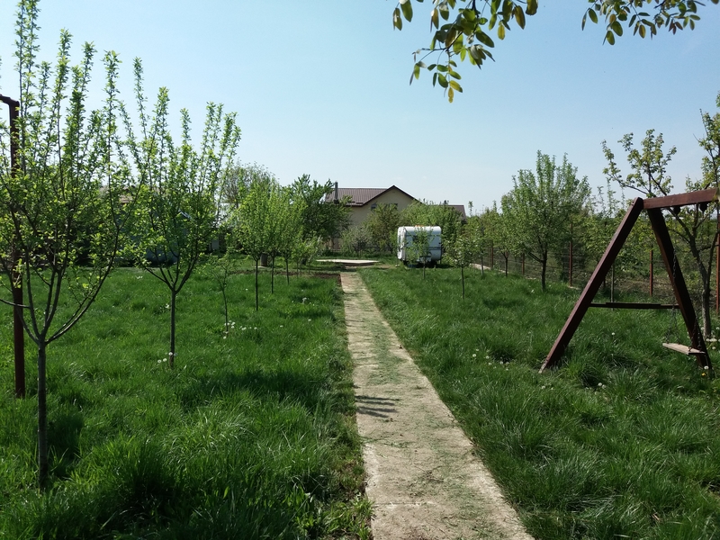 Terenul este împrejmuit cu gard bordurat, are in jur de 70 de pomi fructiferi, aproximativ 40 sunt deja pe rod.