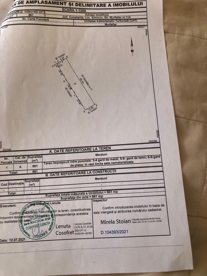 Vand teren 861 m patrati , in loc. Siminoc Com Murfatlar. Localitatea Siminoc este situata la 25 km de Constanta si are iesire la autostrada . Apa este trasa pe teren , gazele acum sunt trase in comuna . Actele la zi ! Terenul este imprejmuit cu gard si este pozitionat pe colt cu iesire la doua strazi.
