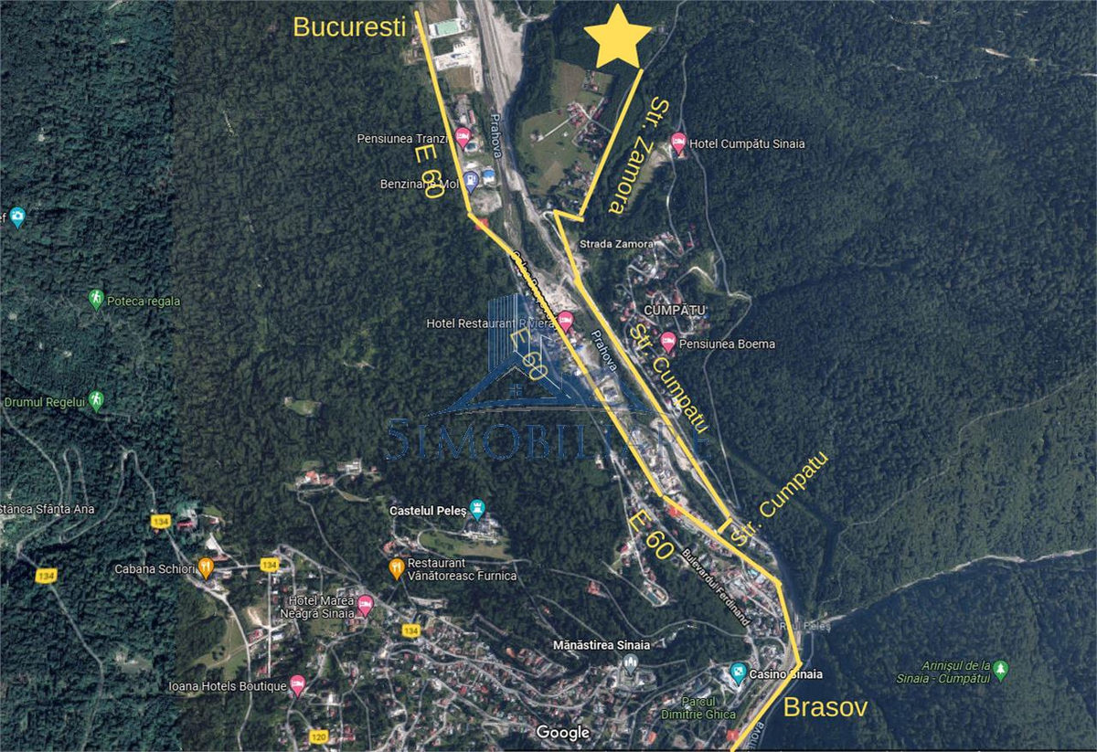 Terenul este situat pe Strada Zamora, Sinaia si este inconjurat de o multitudine de pensiuni noi construite.