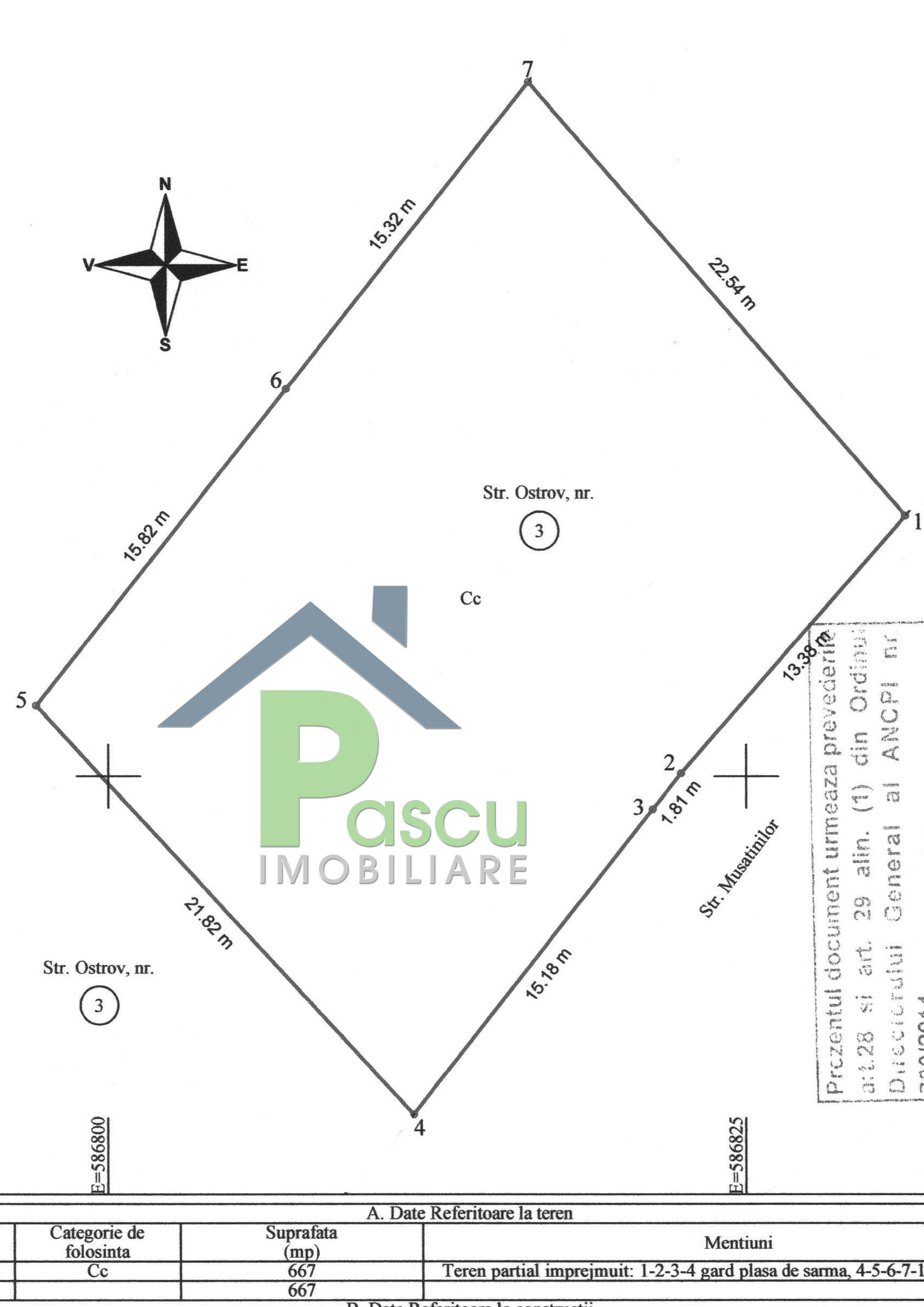 Terenul are o suprafata de 670 metri patrati, cu o deschidere extrem de generoasa de 30 metri liniari.