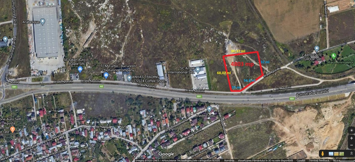 Theodor Pallady, Drumul Intre Tarlale, Arabesque, A2 - teren zona industriala, 4.803 mp, intravilan deschidere 75 ml la str Apusului care este paralele cu A2, utilitati in apropriere (curent, gaze), certificat de urbanism. Pret: 58 Euro/mp + TVA