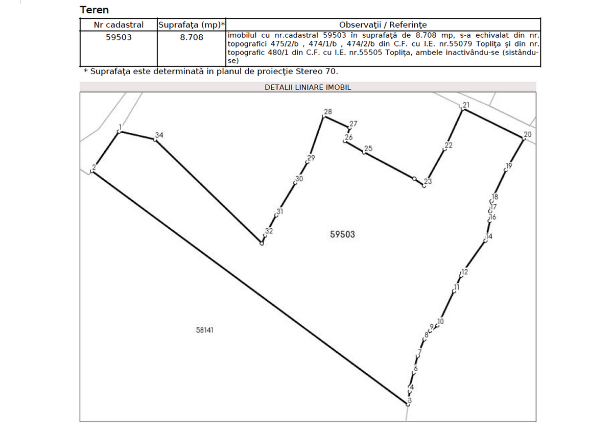 Terenul este intabulat, cu numar cadastral 59503, acte la zi.