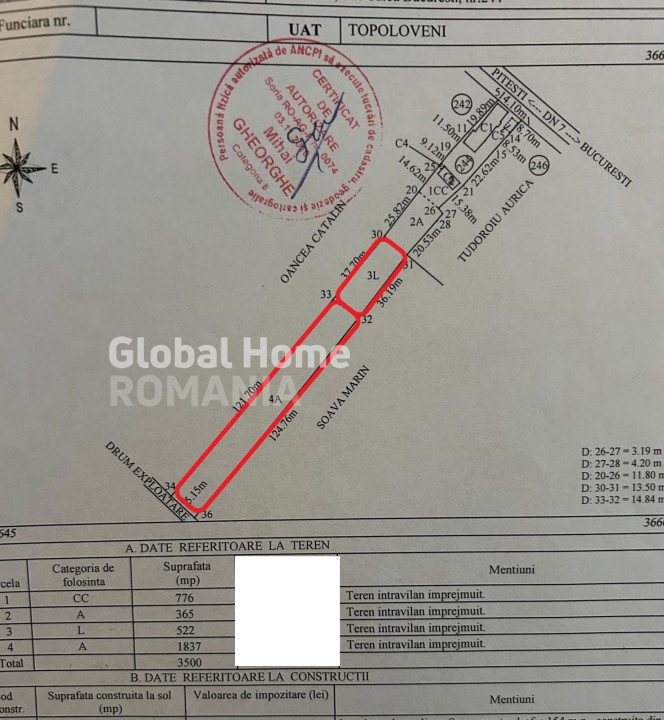 Terenul se afla intre Calea Bucuresti nr 244 si str Guberna.