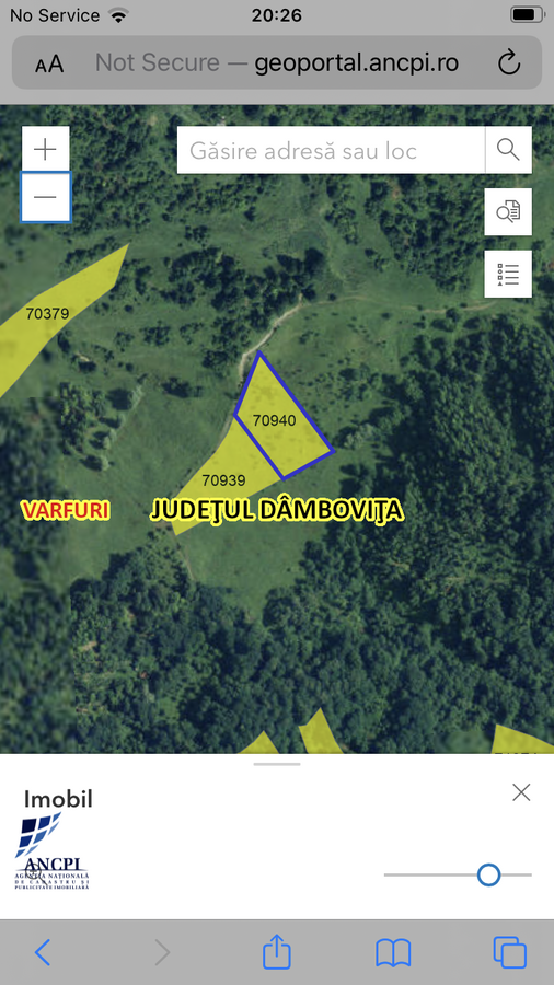Se ofera la vanzare teren 5250 mp, extravilan ingradit, categoria faneata, aflat in comuna Varfuri judetul Dambovita, zona Poiana Mare, la 2 ore de Bucuresti. Terenul este situat pe varful unui deal inalt, inconjurat de padure. Zona salbatica cu priveliste asupra Bucegilor. Utilitati la 400m.