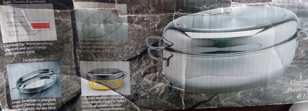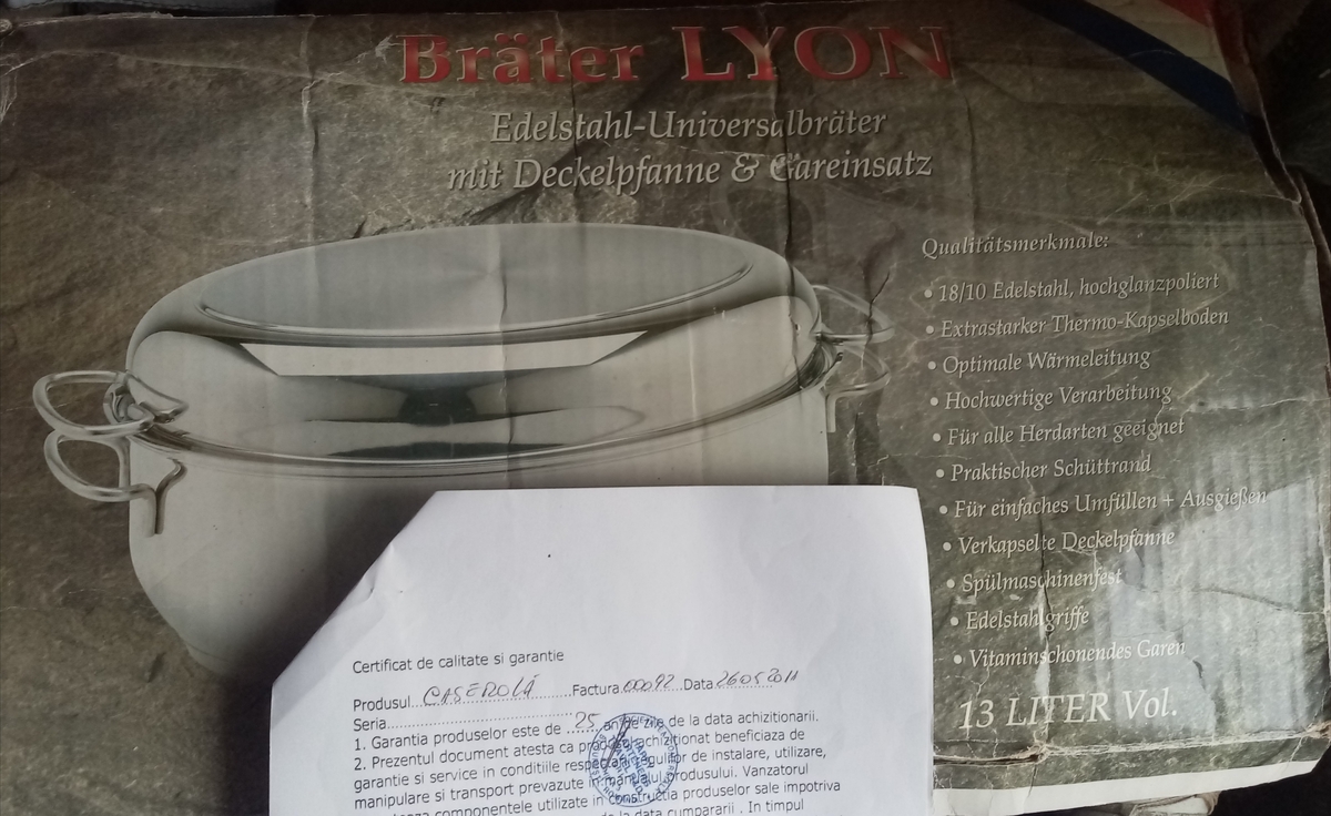 - dimensiunile si constructia vasului, permit folosirea lui atat pe plita (gatire rapida si sanatoasa, cu aburi: peste, legume, etc.), cat si in interiorul cuptorului (sarmale, friptura/curcan, etc.);