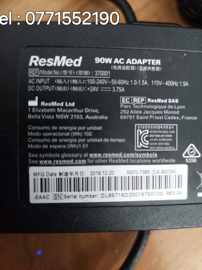 Alimentator, alimentatoare la priza, originale pentru aparat medical de apnee in somn firma Resmed, de 24 volti, 3,75 amperi, putere 90 watt, sunt perfect functionale. Trimit oriunde in tara cu deschidere colet.