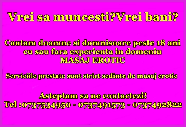 Salon Ador Masaj Erotic Bucuresti angajeaza doamne 30+, domnisoare pentru masaj erotic Bucuresti.
