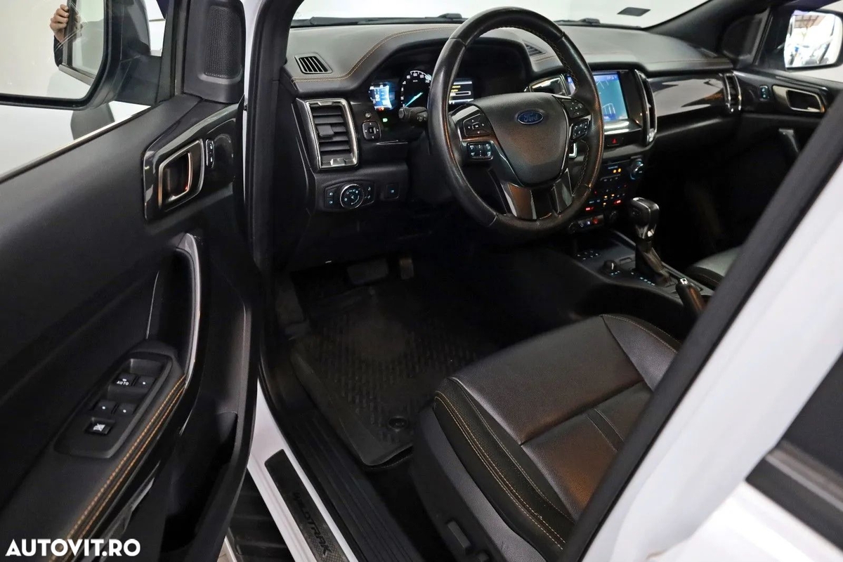 Dotari suplimentare: A treia lumina de frana, Airbag pasager decuplabil, Program stabilizare remorca (TSA), Oglinzi exterioare rabatabile electric, Oglinzi exterioare reglabile si incalzite, Indicatie temperatura exterioara, Baterie intarita, Lumina semnalizare in oglinzile exterioare, Interfata Bluetooth, Lumina exterioara in oglinzile laterale, Computer de bord, Compartiment pentru ochelari in plafon, Consola de plafon cu lumini de citit, Bare longitudinale plafon (aluminiu), Asistent franare de urgenta, Chei de vehicul (2) ambele pliabile, Geamuri electrice spate, Covorase premium, Cutie automata 10 trepte tip 10R80, Tensionator centuri de siguranta, Luneta incalzita, Oglinda retrovizoare cu abatere automata, Sistem Intelligent Protection System (IPS), Isofix pentru scaun copii, Caroserie cu patru usi si cabina dubla, Siguranta pentru copii electrica, Airbag pentru genunchi sofer, Tava pentru incarcatura, Suport lombar scaun fata stanga, Coloana volan reglabila pe inaltime, Consola centrala premium, Revizuire model (2), Motor 2.0 L - 156 kW TDCi Panther KAT, Ampatament 3220 mm, Sistem monitorizare presiune anvelope, Norma poluare Euro 6d-TEMP, Manere schimbator trepte din piele, Aparatoare noroi spate si fata, Praguri laterale cu trepte, Scaun fata stanga reglabil electric (8 directii), Tapiterie din piele, Parasolar stanga si dreapta cu oglinda iluminata, Diferential blocabil, Sistem Start/Stop, Prize 12V si 230V in spatiul de incarcare, Bara de protectie spate neagra (otel), Bara de protectie sport, Bara de protectie in culoare caroserie, Protectie inferioara, Geamuri fumurii, Pachet pregatire tahograf, Pachet Wildtrak.
