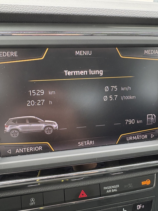 2017 Seat Ateca 1.0 TSI 116 cp Euro 6, manuala, 6+1 viteze, un motor foarte reusit, fiabil si surprinzator de fasnet. Garda mare la sol, consum mic si impozit 40 lei pe an, excelenta pentru oras. Masina a fost achizitionata personal din Germania la sfarsitul lunii octombrie si inmatriculata intre timp in tara. Sunt al 2-lea proprietar, primul fiind o doamna in Germania. Fabricatie 18.12.2016, prima inmatriculare 15.03.2017 ( an model 2017 conform cod VIN ). Voi primi masina de serviciu curand, acesta fiind si motivul vanzarii. Are carte service cu toate reviziile la zi si dispune de cele mai importante dotari si anume: incalzire scaune, navigatie mare cu touchscreen, senzori parcare, ploaie, lumina si presiune in anvelope, auto-hold, Apple Carplay, front assist cu functie de franare (city pedestrian assist), camera marsarier, scaune semi-piele si alcantara, climatronic 3 zone, faruri si stopuri LED, oglinzi rabatabile electric si incalzite, hill assist, cornering lights, coming-leaving home, bluetooth audio, 4 geamuri electrice, start-stop, isofix, etc. Masina vine la pachet cu roata de rezerva, compresor, covorase si tavita portbagaj noi, anvelope all-season si revizie efectuata recent (uleiul, toate filtrele si stergatoarele). Parcata in parcare subterana, ferita de temperaturi extreme si intemperii.