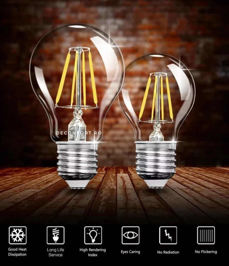 Bec LED filament incandescent Edison 4w dulie e27 lumina calda