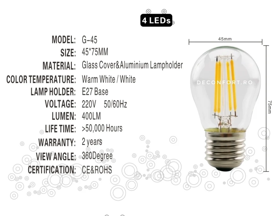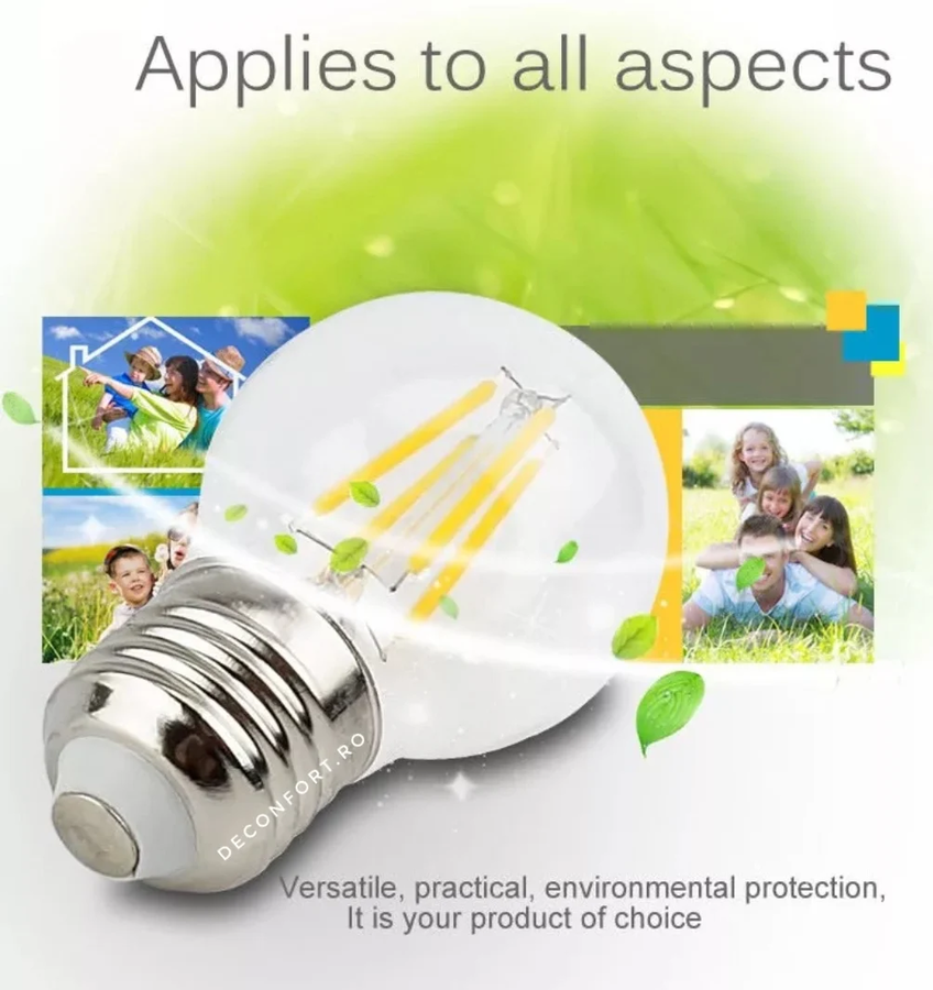 Bec LED filament incandescent Edison 4w dulie e27 lumina calda G45