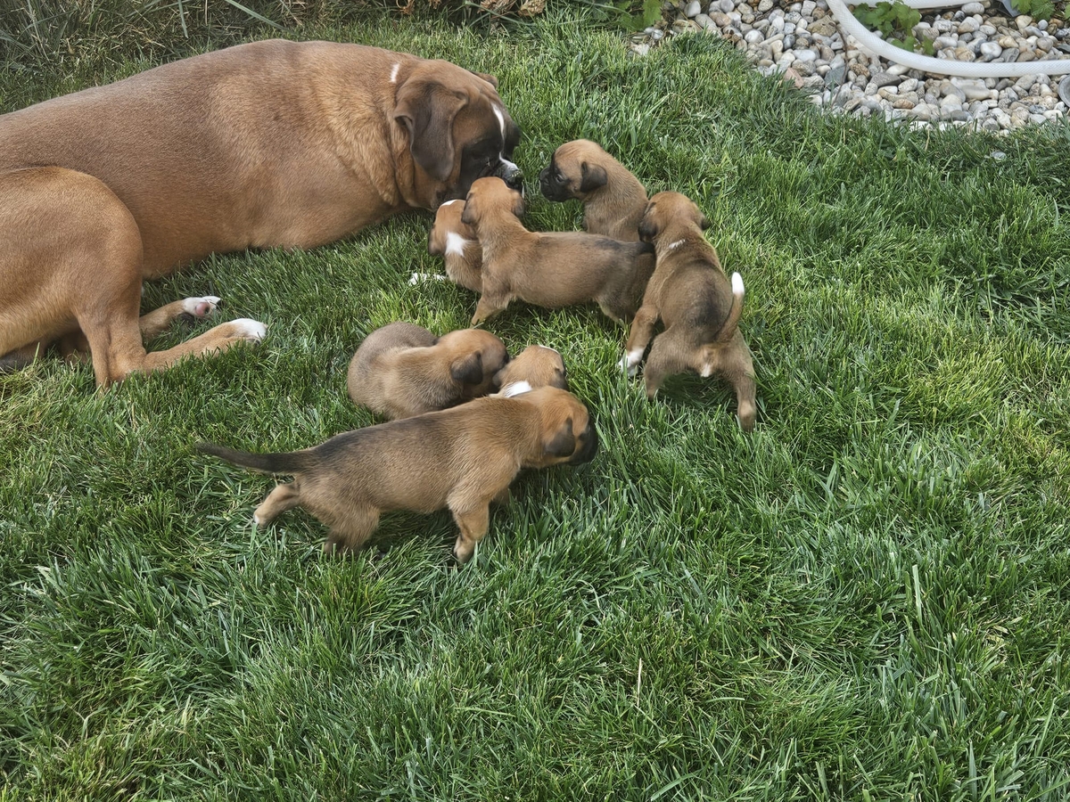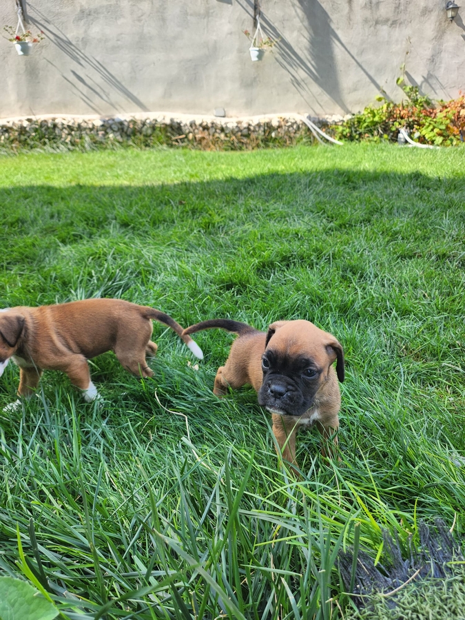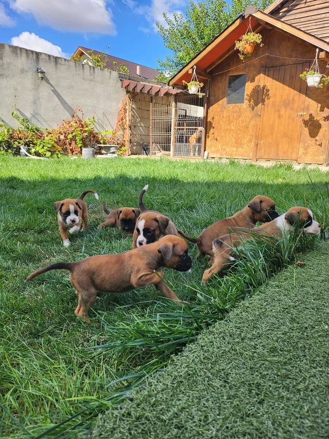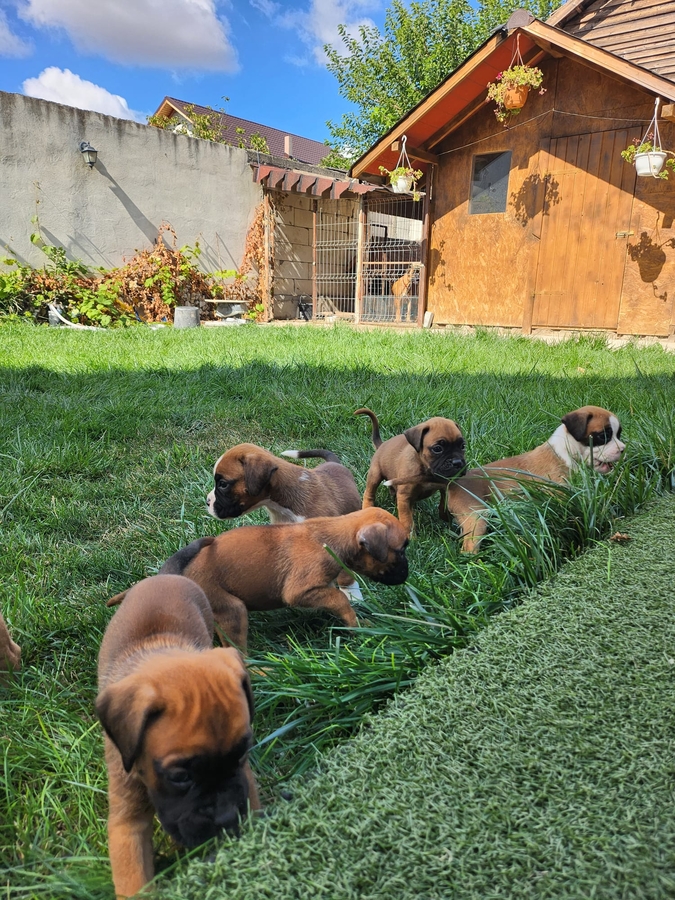 Pui Boxer German, deparazitati, vaccinati, carnete de sanatate. Detin ambii parinti. Masculi si femele. DN: 14 august