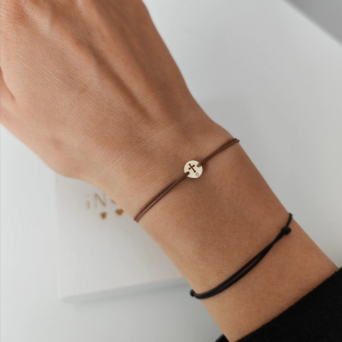 Bratara banut aur 14K cu diamant si cruciulita: un cadou incarcat cu magie.